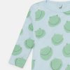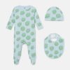 The Stella Kids Spring Summer 2025 collection playfully shows the next generation that animals are friends, not fashion. The season’s funny, froggy face is printed on this soft, organic cotton romper, hat and bib set.