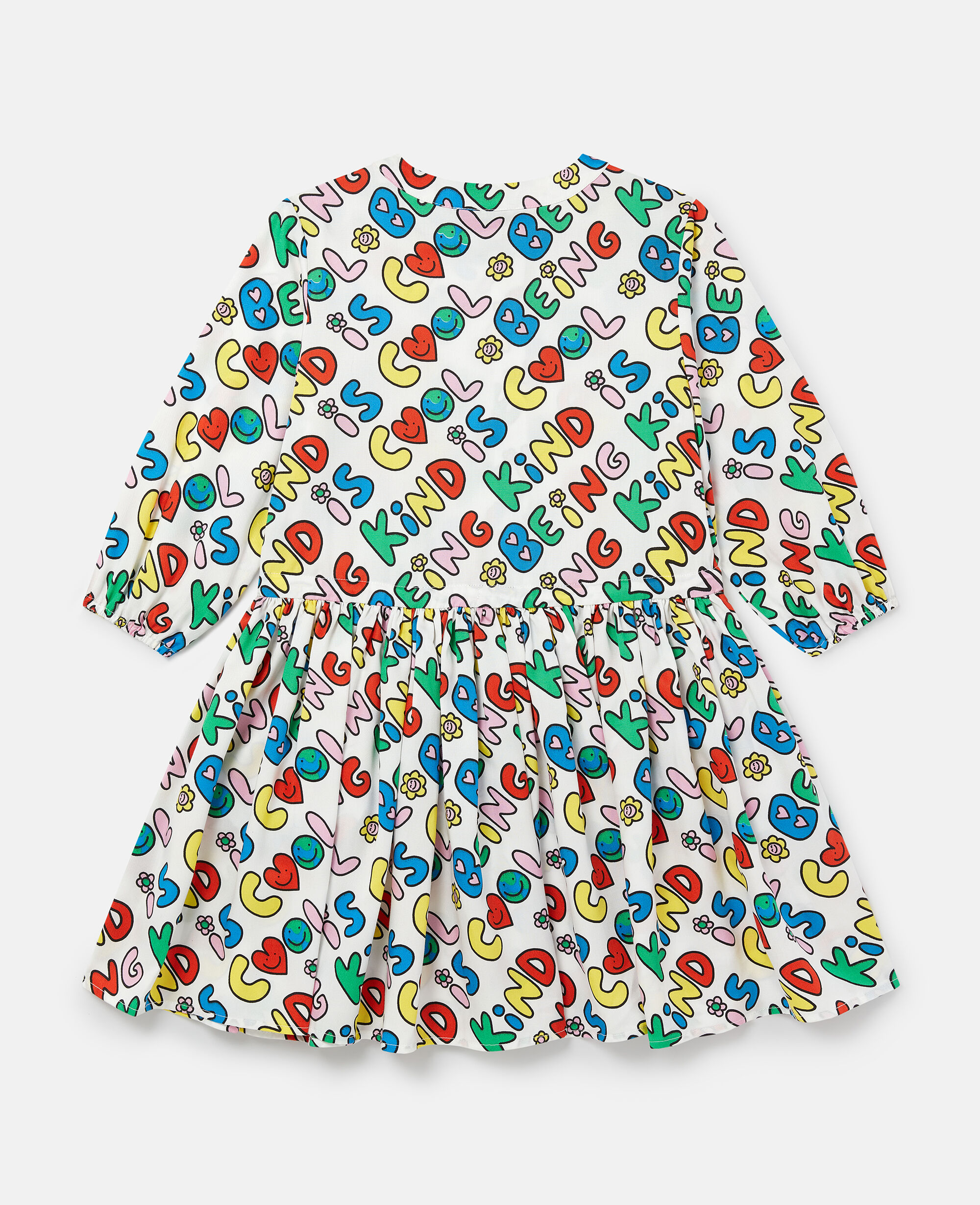 This dress is made from a soft forest-friendly-blend viscose jersey. For Fall/Winter 2025, Stella McCartney Kids is inspired by the love we have for our one shared home – Mother Earth. Smiling flowers, hearts and other earthy friends beam across a collection crafted from 96% conscious materials.