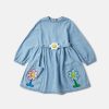 This long-sleeve dress is made from soft organic cotton denim. For Fall/Winter 2025, Stella McCartney Kids is inspired by the love we have for our one shared home – Mother Earth. Smiling flowers, hearts and other earthy friends beam across a collection crafted from 96% conscious materials.