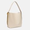 The Frayme tote bag is a bold cruelty-free style, taking classic brand codes and reenergising them with a modern visual narrative. Inspired by our iconic Falabella, an oversized alumnium chain frames the edges – complementing the smooth vegan alternative to animal leather. Carry it on one shoulder or in your hand for striking wear-anytime appeal.