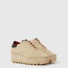 The iconic Sneak-Elyse platform shoes are reimagined in a sportier, streamlined silhouette. Foundational to any Stella wardrobe, these ivory vegan sneakers are crafted cruelty-free from our luxuriously soft alternative to animal leather. A new, lower wedge heel offers maximum comfort, resting on a tonal saw-edge micro sole.